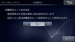 にタッチして、普段の乗車人数を設定し、[終了]にタッチします。