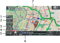 現在地画面は、自車位置とその周辺を示した地図です。[現在地]スイッチを押すと現在地画面が表示されます。