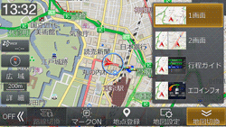 地図切換画面を消すには、再度[地図切換]にタッチします。または地図画面にタッチするか、[現在地]スイッチを押します。