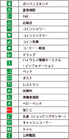 SA/PA内の施設がマークで表示されます。