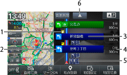 ルート案内中、2画面表示の右側に簡易行程図を表示します。