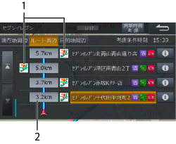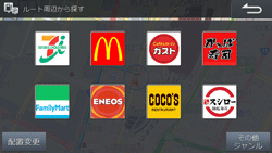 目的地が設定されている場合は、ルートの周辺にある施設を検索して、ジャンルで絞り込むことができます。