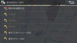 周辺施設を探す目的地または経由地を選んでタッチします。