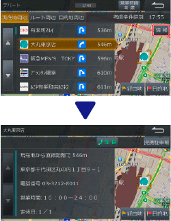 選んだ施設を経由地に設定します。目的地が設定されている場合のみ操作できます。