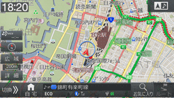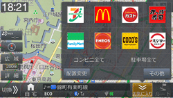 現在地、ルート、目的地周辺のよく使う施設を簡単に検索できます。