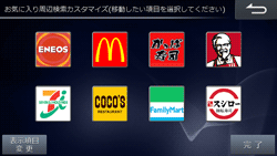 お気に入り周辺検索画面に表示されるブランドのアイコン位置を入れかえることができます。また、表示するブランドをリストから選ぶことができます。