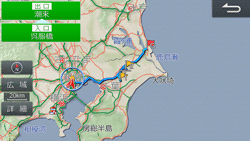 画面にルート全体(全ルート)を表示します。現在地から目的地までのルートと、乗り降りするインターチェンジと料金が表示されます。