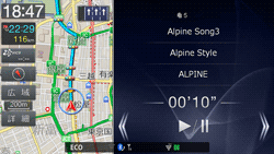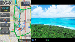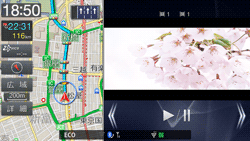 ルート案内画面を表示したまま音楽再生画面を表示するなど、ナビゲーションとAVソースの2つの画面を同時に表示できます。