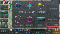 ルート案内中の現在地画面で[ルート]にタッチし、ルート画面を表示します。