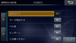 接近音を鳴らすには、[接近音]にタッチして接近音リスト画面を表示します。登録する音声にタッチし、[完了]にタッチします。
