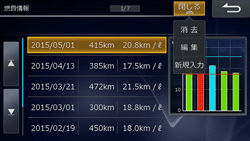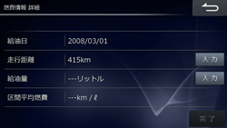 平均燃費を算出するために、走行距離と給油量を入力します。