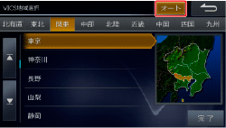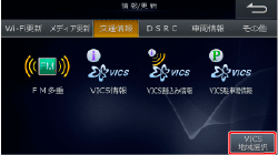 [交通情報]タブにタッチし、[VICS地域選択]にタッチします。