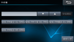 FM多重放送を見ることができます。選択できる番組は受信する放送局によって異なります。現在地で受信可能な放送局を自動で検索したり、周波数を指定して選択することができます。また、ラジオのFM放送に周波数を合わせたり、放送局の地域を指定して受信することもできます。