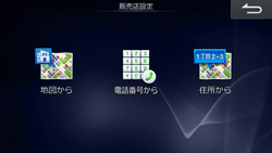 [地図から][電話番号から][住所から]のいずれかにタッチして販売店を検索し、[登録]にタッチします。設定が完了したら[次へ→]にタッチします。