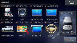 メーカー名をタッチして選択して[決定]にタッチし、続けて車種名とグレードを選択して[決定]にタッチします。