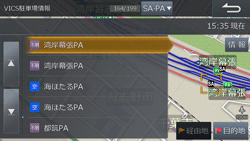 高速道路ではサービスエリア(SA)/パーキングエリア(PA)のリストを表示します。