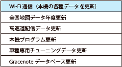 テザリング対応スマートフォンなどを使用してWi-Fi接続すると、地図データなどの本機データや、SDカードに音楽を録音したときにアルバム名やアーティスト名などを表示するGracenoteデータベースを更新することができます。