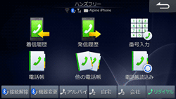 (NAVI)/[MENU]/[メニュー]スイッチを押してナビメニュー画面を表示し、[ハンズフリー]にタッチします。