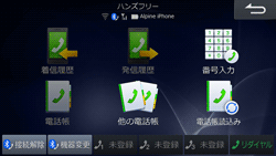 (NAVI)/[MENU]/[メニュー]スイッチを押してナビメニュー画面を表示し、[ハンズフリー]にタッチします。