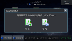 [同期]にタッチすると携帯電話の電話帳データを本機に読み込みます。[同期]にタッチして読み込みできない場合は[追加]にタッチします。