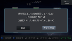 本機のデバイス名が表示され、携帯電話からの接続状態になります。携帯電話を操作して本機に接続し、電話帳を転送します。