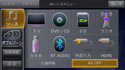 オーディオモードをONにするには、[AV]スイッチを2秒以上押すか、AVソースメニュー画面で希望のソースにタッチします。