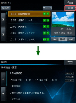 番組表画面で[情報]にタッチすると、番組の詳細情報を表示します。