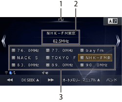 ラジオ画面でプリセットスイッチにタッチして、希望の放送局を受信します。
