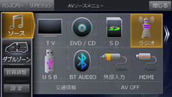 (AUDIO)/[MODE]スイッチを押し、AVソースメニュー画面で[ラジオ]にタッチします。