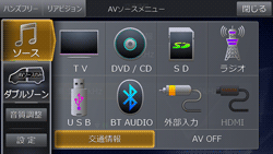 (AUDIO)/[MODE]スイッチを押し、AVソースメニュー画面で[交通情報]にタッチします。