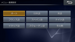 タイトルメニューやメインメニューで表示される言語を設定します(初期設定値は「オート」)。