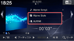 アーティストリスト画面とアルバムリスト画面は、SD画面のアーティスト名/アルバム名表示部分にタッチしても表示できます。
