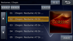 演奏順を変更したい曲名にタッチしたあと、[演奏順UP]または[演奏順DN]にタッチします。タッチするたびに曲順が上または下に移動します。
