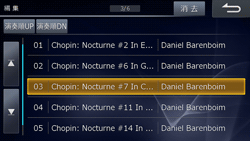 演奏順を変更したい曲名にタッチしたあと、[演奏順UP]または[演奏順DN]にタッチします。タッチするたびに曲順が上または下に移動します。
