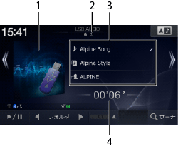 (AUDIO)/[MODE]スイッチを押し、AVソースメニュー画面で[USB]にタッチします。