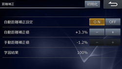通常はそのままご使用いただけますが、自車位置が大きくずれる場合やタイヤを交換した時は、距離補正値の初期化を行ってください。その後見通しの良い道路を数十km走行すると、自動補正が完了します。