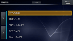 [全ての画面][映像ソース][フロントカメラ][リアカメラ][ルームカメラ][サイドカメラ][インターフェースボックス]のいずれか設定したいモードにタッチします。