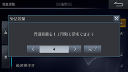 電話の受話音量・送話音量を調整します(初期設定値は受話音量が「4」、送話音量が「6」)。