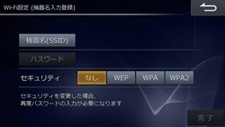 セキュリティの種類を[なし][WEP][WPA][WPA2]のいずれかにタッチして選びます。