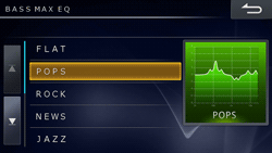 設定値:FLAT、POPS、ROCK、NEWS、JAZZ、ELECTRICAL DANCE、HIP HOP、EASY LISTENING、COUNTRY、CLASSICAL