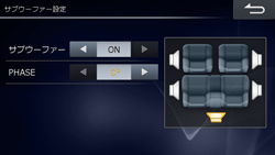 サブウーファーを接続する場合はONに設定してください(初期設定値はサブウーファー「OFF」、PHASE「0°」)。