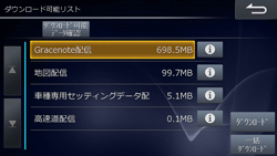 [ダウンロード可能データ確認]にタッチします。通信後、ダウンロード可能なデータがあればリスト表示されます。