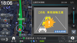 走行ルート上に渋滞や落下物などがある場合、簡易図形と音声で注意喚起を行います。