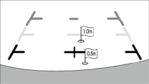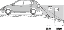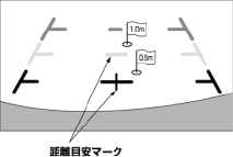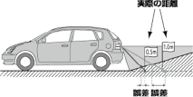下り坂が後方にあるときには、実際の距離よりうしろに距離目安マークが表示されます。そのため下り坂に障害物があった場合には、実際より近くにあるように見えます。