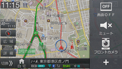 フロントカメラ映像は、本機のオプションキーか、別売のカメラダイレクトキー(HCE-CS100G)を操作して表示します。また、速度や指定した地点に連動して、自動的に表示することもできます。