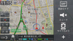 サイドカメラ映像は、オプションキーか、別売のカメラダイレクトキー(HCE-CS100G)を操作して表示します。また、指定した地点に連動して、自動的に表示することもできます。