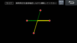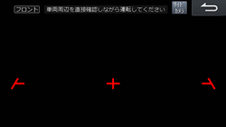 フロントカメラ映像表示中に[サイドカメラ]、サイドカメラ表示中に[フロントカメラ]にタッチします。カメラ映像が切りかわります。