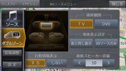 「後席スピーカー音量」で、前席とは別に後席でTV・DVDの音量調整を行うことができます。