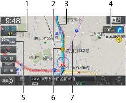 目的地案内中、目的地・経由地までの残距離や到着予想時刻を表示します。