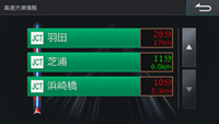 VICS情報がある場合、タッチすると高速道路上のJCT(ジャンクション)やIC(インターチェンジ)の混雑状況がわかる高速渋滞情報画面を表示します。